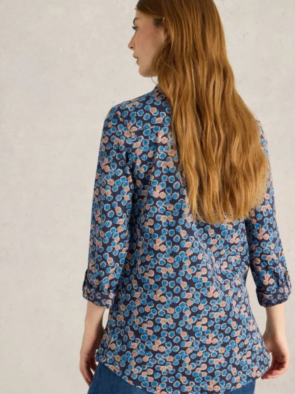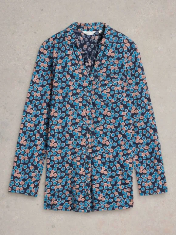ANNIE COLLARED LONGLINE SHIRT in BLUE PRINT