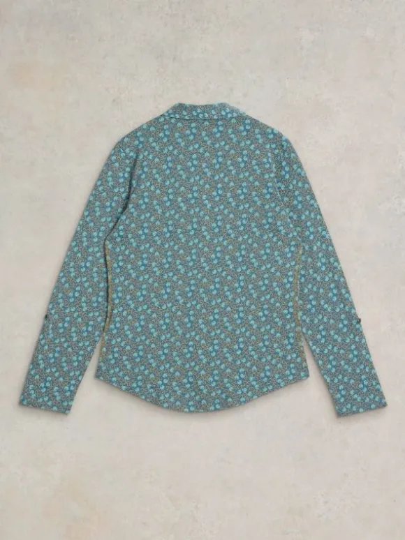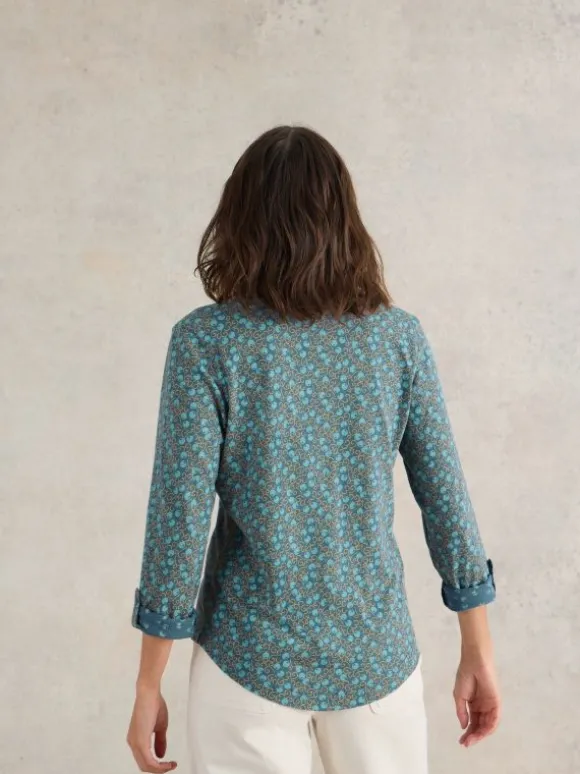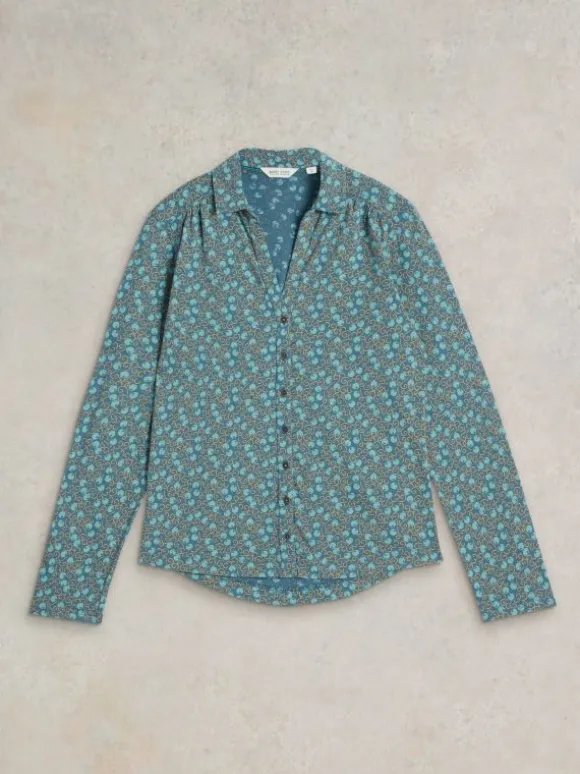 ANNIE JERSEY LONG SLEEVE SHIRT in TEAL PRINT