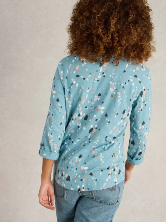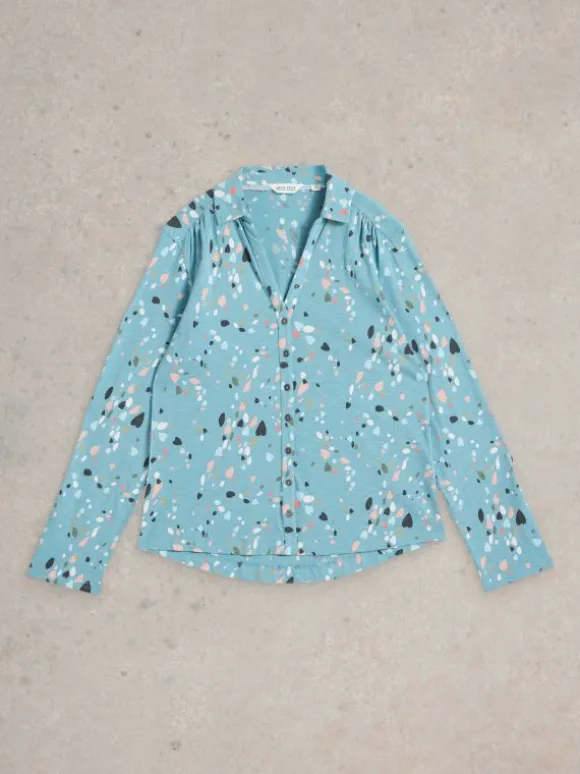 ANNIE LONG SLEEVE JERSEY SHIRT in TEAL PRINT