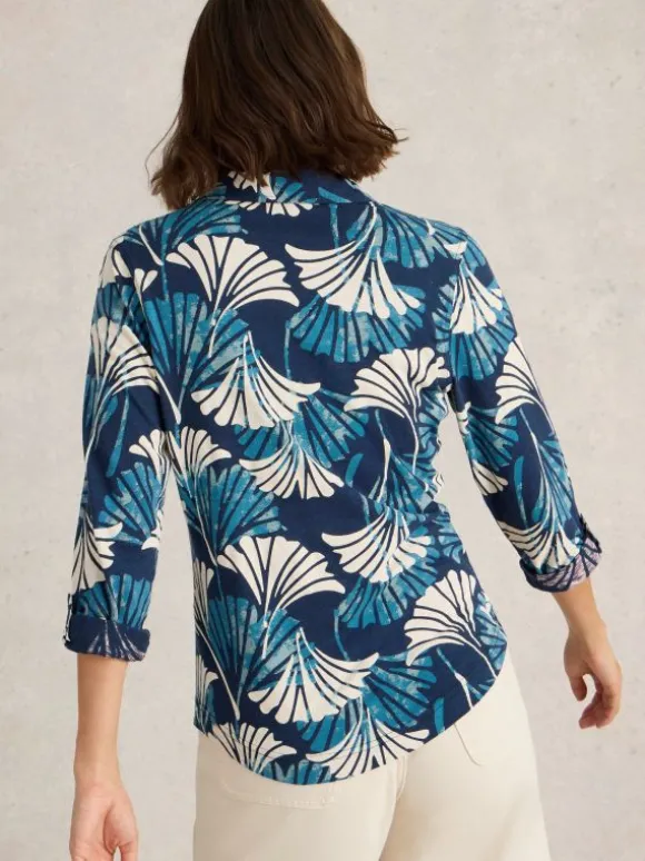 ANNIE MID SLEEVE JERSEY SHIRT in BLUE PRINT