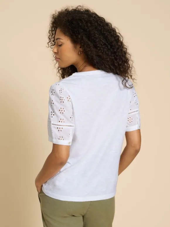 BELLA BRODERIE MIX TOP in BRILLIANT WHITE