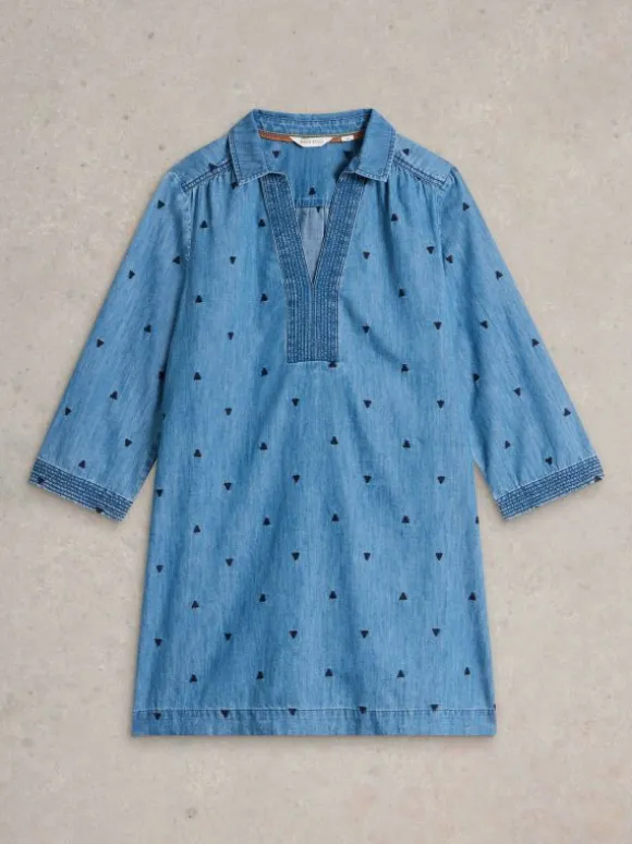 Be the first to review “Blaire Denim Embroidered Tunic in MID DENIM” Cancel reply