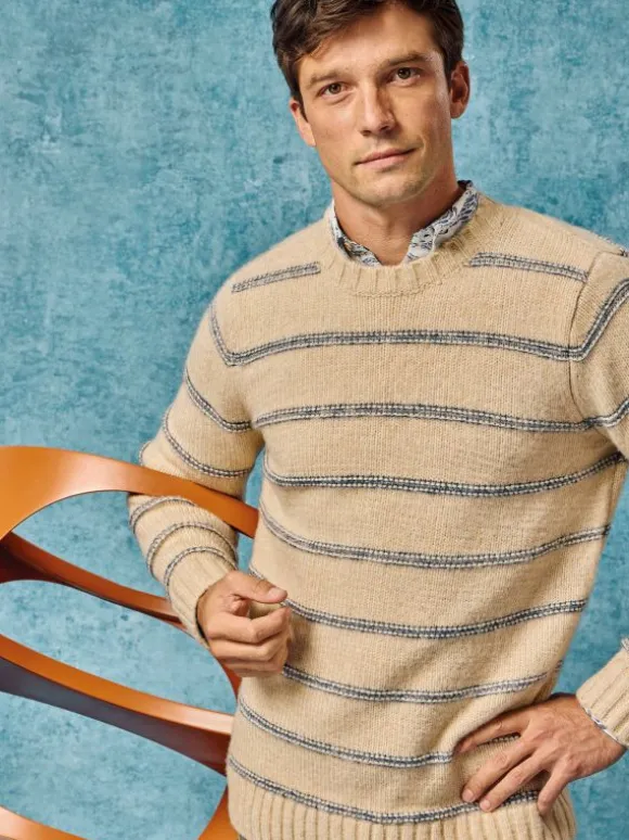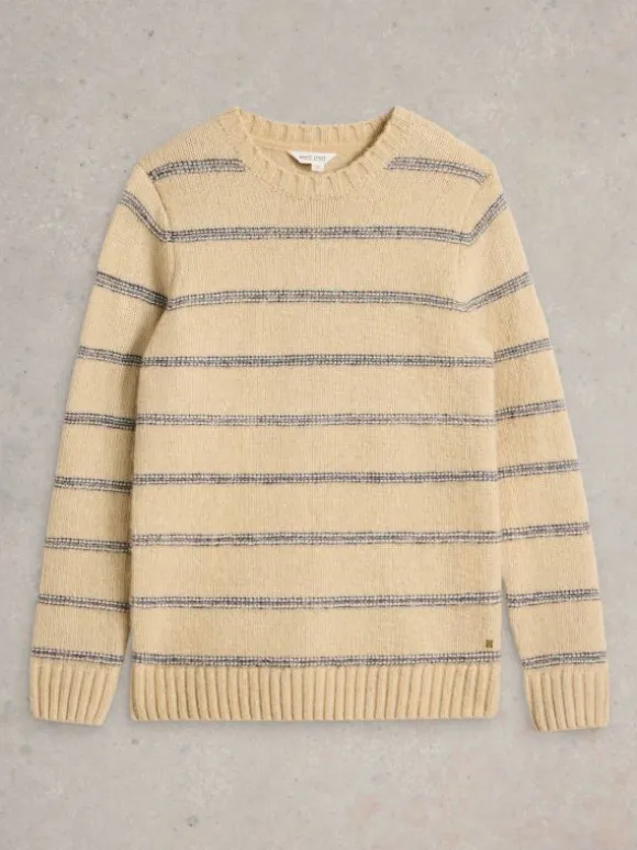 Breton Stripe Crew Neck Jumper in NATURAL MULTI