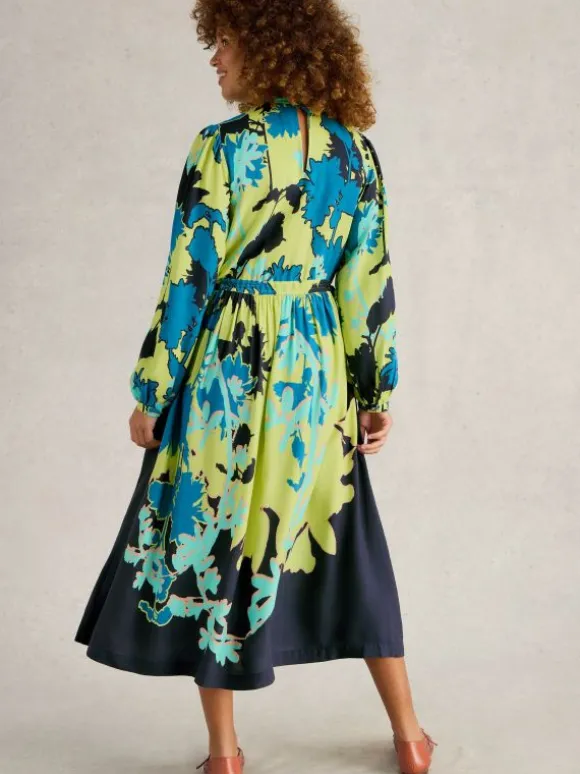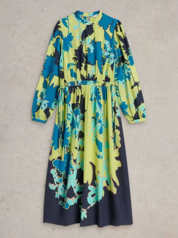 The Freya midi dress is like a breath of fresh air. A bold botanical print in bright and zesty shades. A fitted bodice with a free-flowing skirt. And a gathered waist with tie details at the side. Easy breezy.