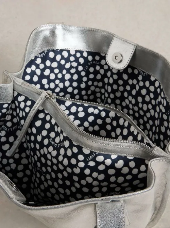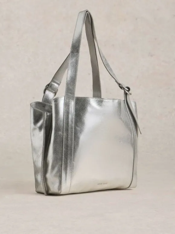 Hannah Tote Leather in SILVER TONE METALLIC