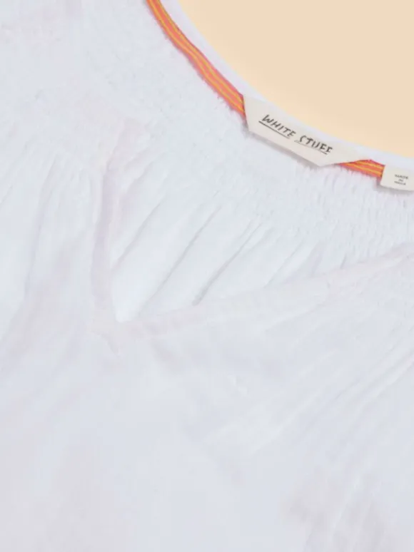 LUELLA NOTCH NECK EMB TOP in BRILLIANT WHITE