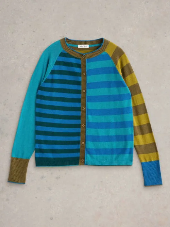 LULU STRIPED CREW NECK CARDI in BLUE MULTI