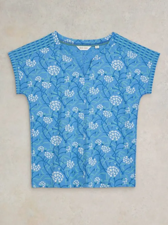 NELLY NOTCH NECK COTTON TEE in BLUE PRINT