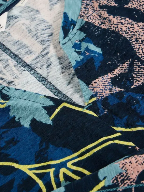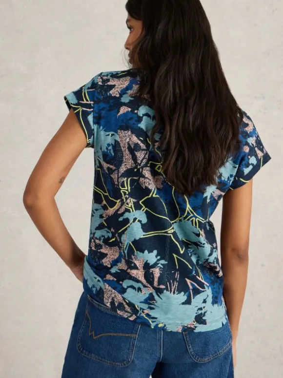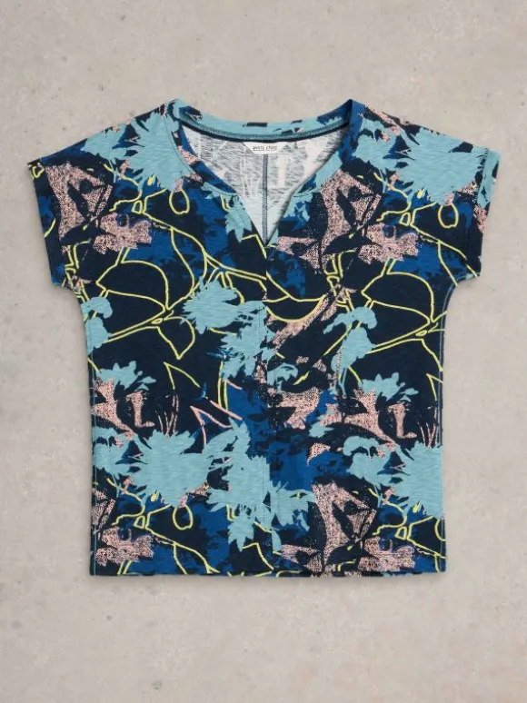 NELLY NOTCH NECK SHORT SLEEVE TEE in NAVY PRINT