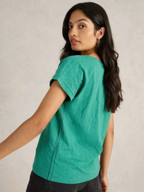 NELLY NOTCH NECK T-SHIRT in DUSTY GREEN