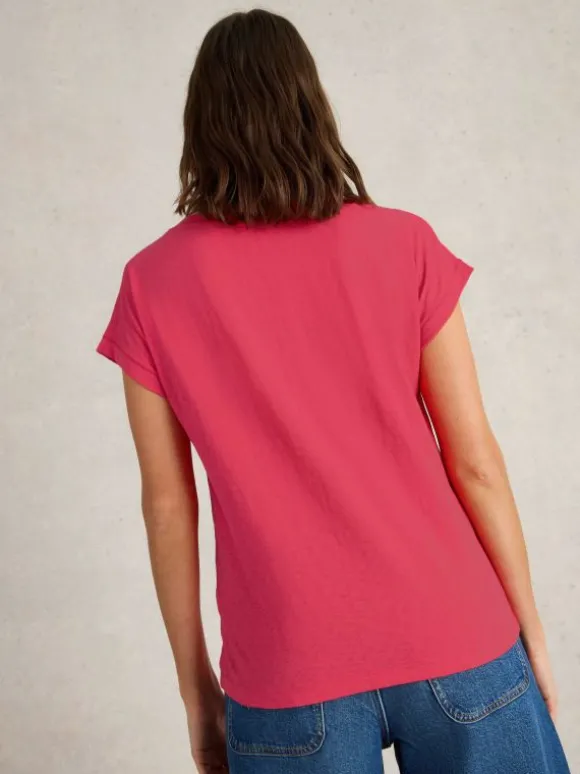 NELLY NOTCH SHORT SLEEVE TEE in BRIGHT PINK