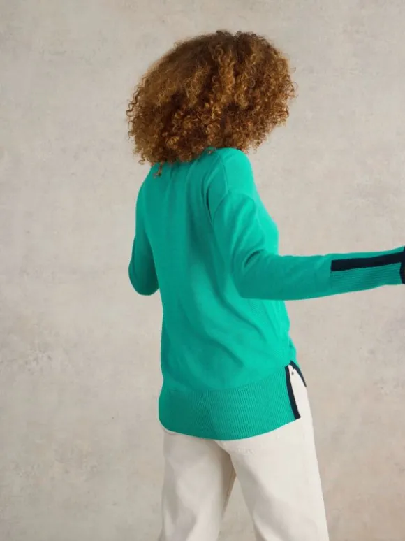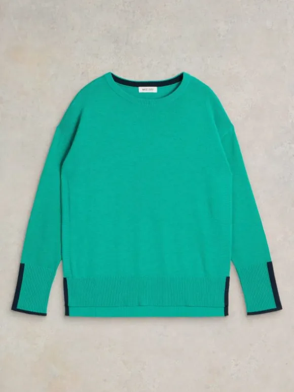 OLIVE CREW NECK COTTON JUMPER in BRIGHT TEAL