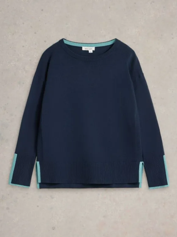 OLIVE CREW NECK COTTON JUMPER in FRENCH NAVY