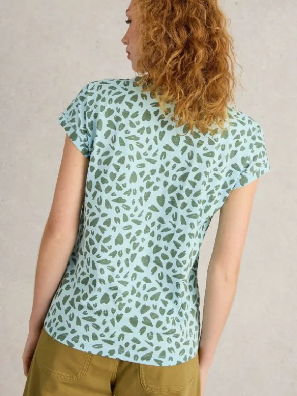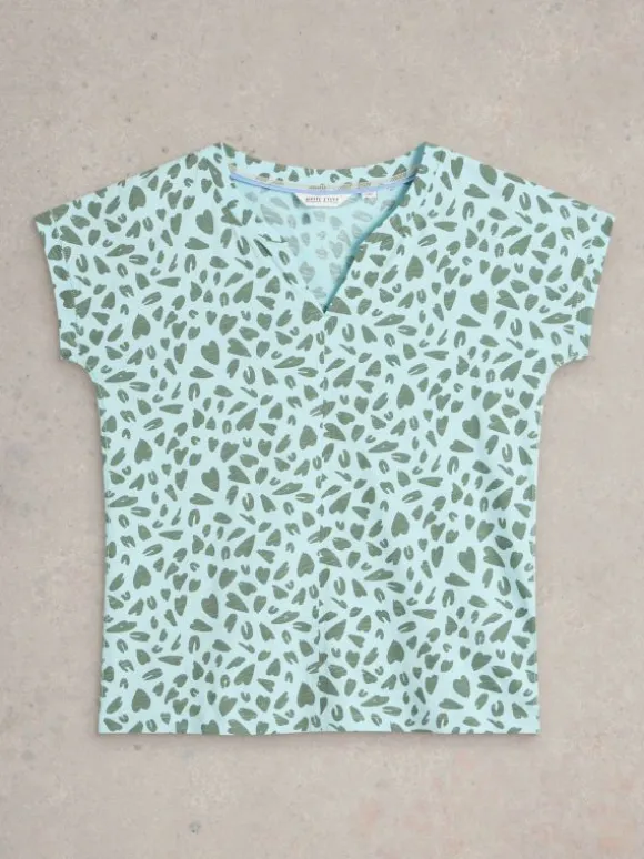 PRINTED NELLY NOTCH TEE in BLUE PRINT