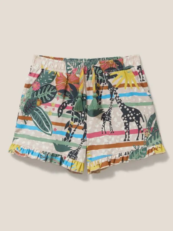 Renee Printed Frill Shorts in NATURAL MULTI