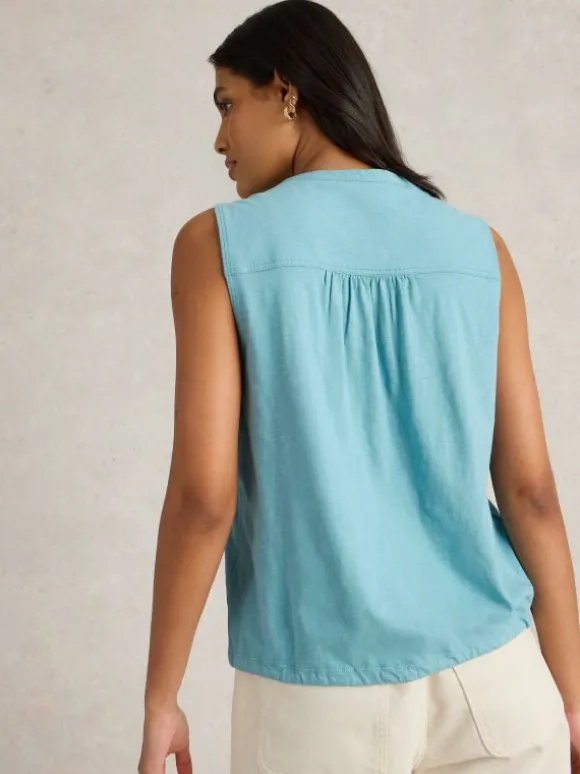 TULIP SLEEVELESS SHIRT in MID BLUE