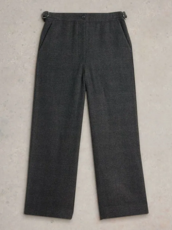 Oh, look at these nice tweedy trousers. The fit is wide. The fabric is a warm wool mix. And there are handy buckles at the sides to adjust the fit around the waist. Smart.