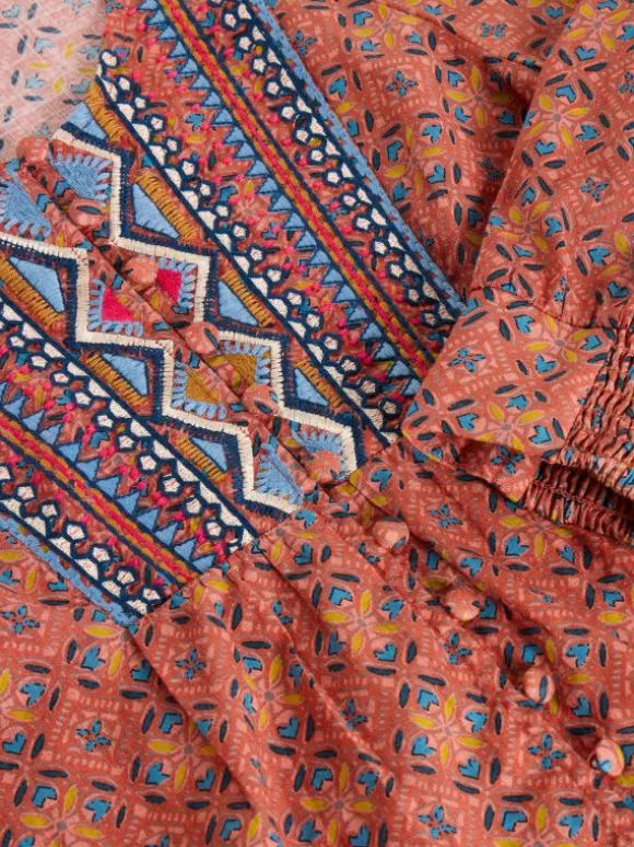 Intricate embroidery and a detailed print make this top one to watch. Although it’s better to wear it.