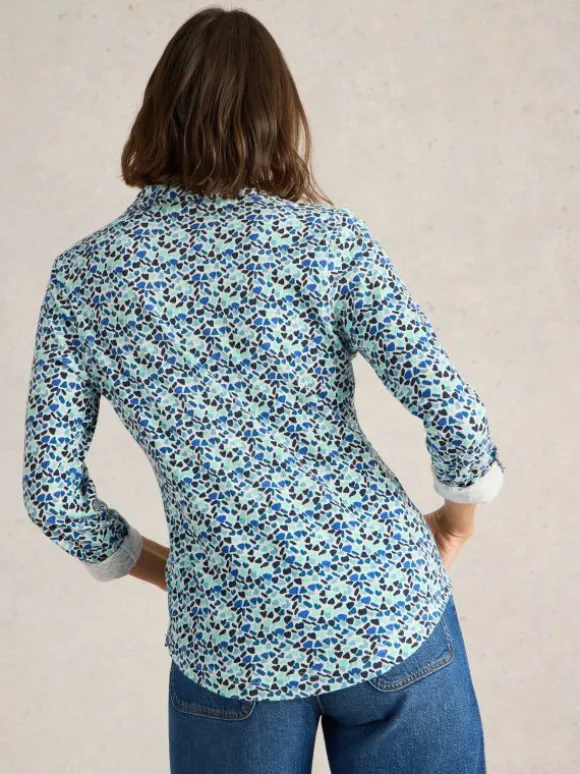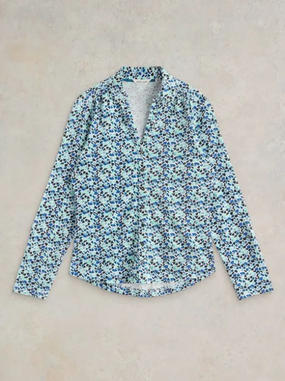 ANNIE COLLARED JERSEY SHIRT in BLUE MULTI