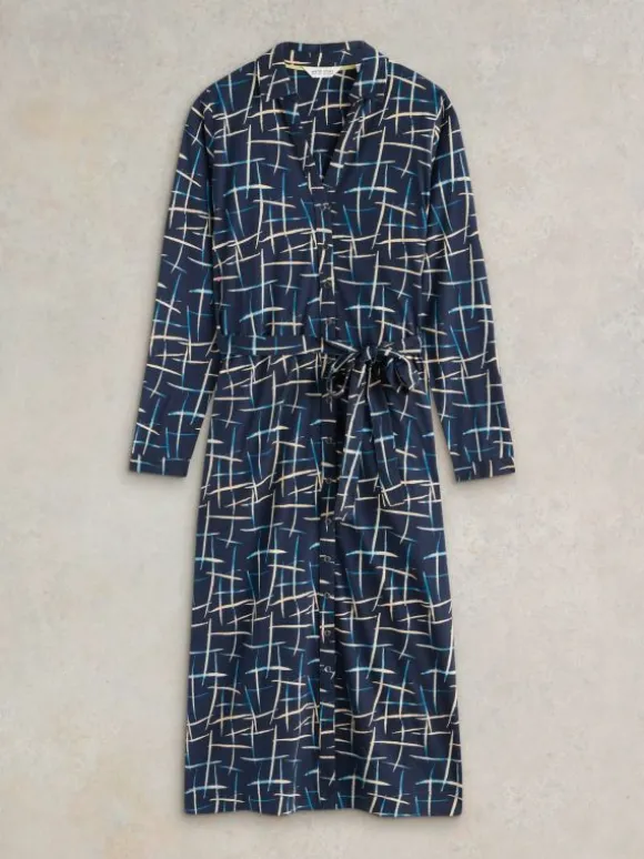 Annie Jersey Shirt Midi Dress in NAVY PRINT