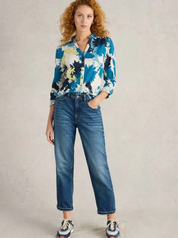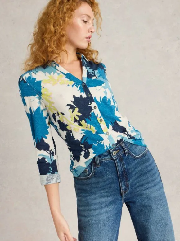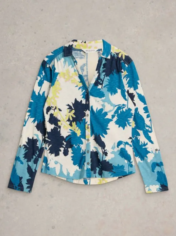 ANNIE MID SLEEVE JERSEY SHIRT in WHITE MULTI