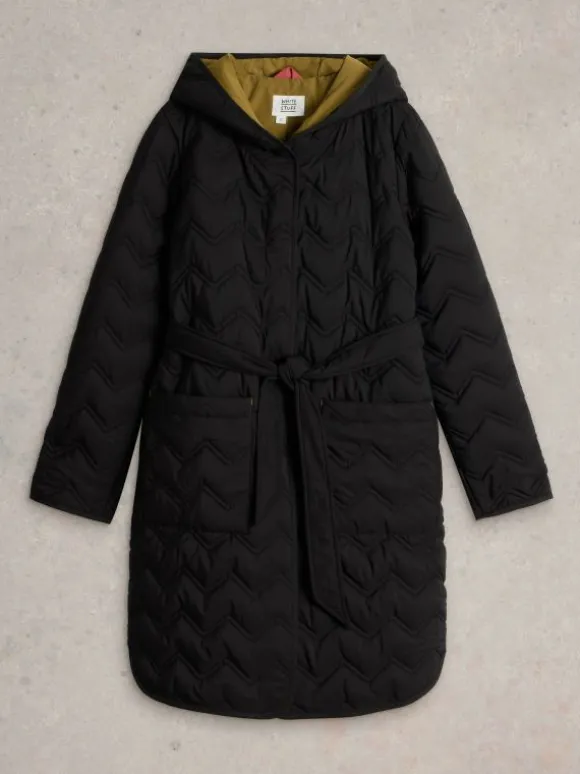 We gave this black winter coat the White Stuff treatment. Which, in this case, means a bright yellow lining and a snazzy zig zag quilted design. (Oh, and it’s made with recycled fibres too.)