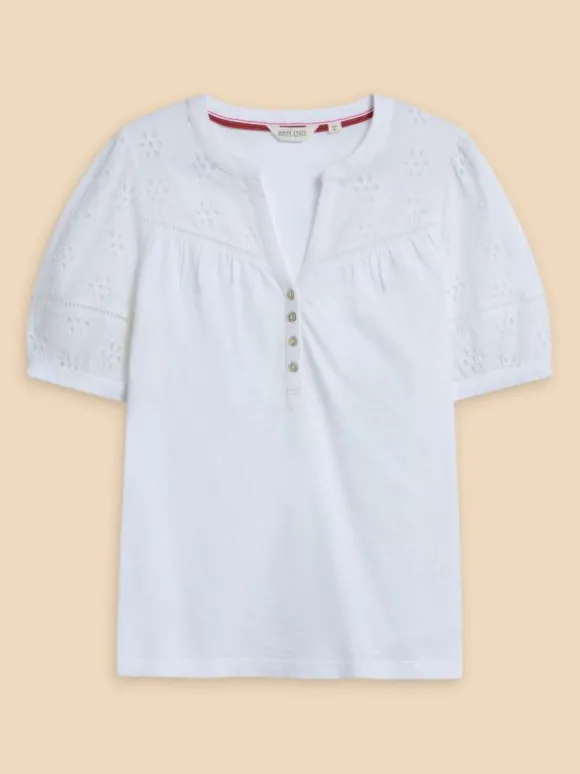BELLA BRODERIE MIX TOP in BRILLIANT WHITE