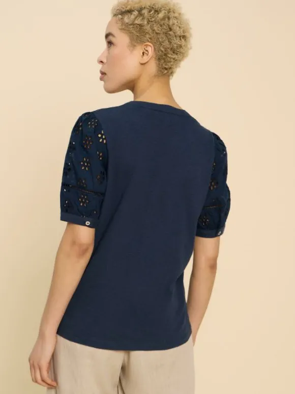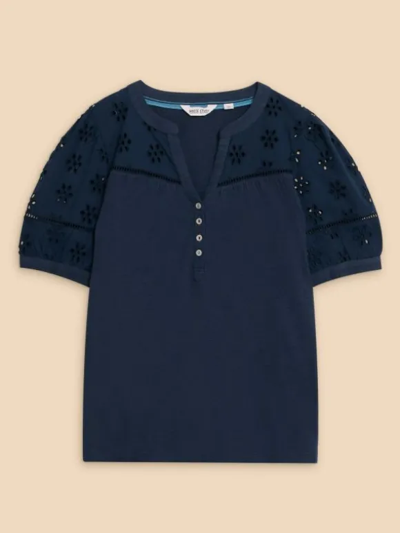 BELLA BRODERIE MIX TOP in FRENCH NAVY