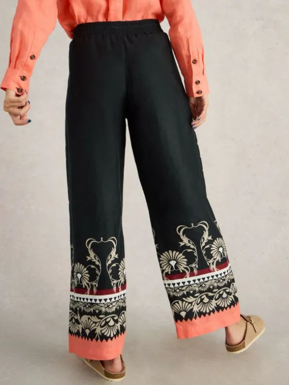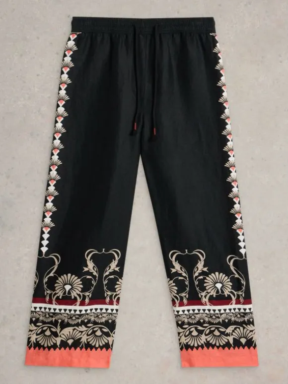 Belle Linen Wide Leg Trouser in BLACK PRINT