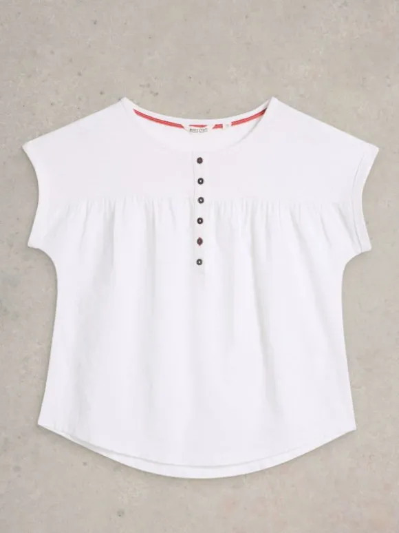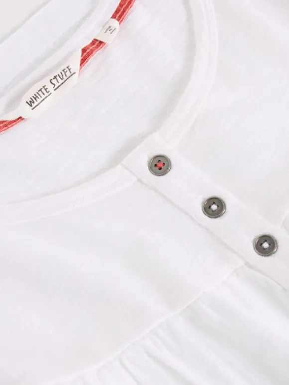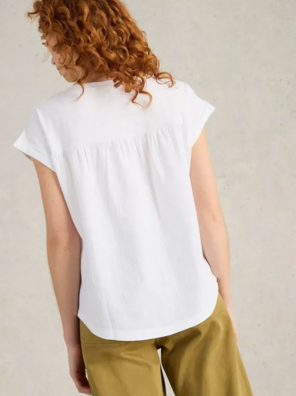 We’ve spruched (that’s spruced and ruched) this tee for a nice front detail. It’ll look great under one of our cosy cardis.