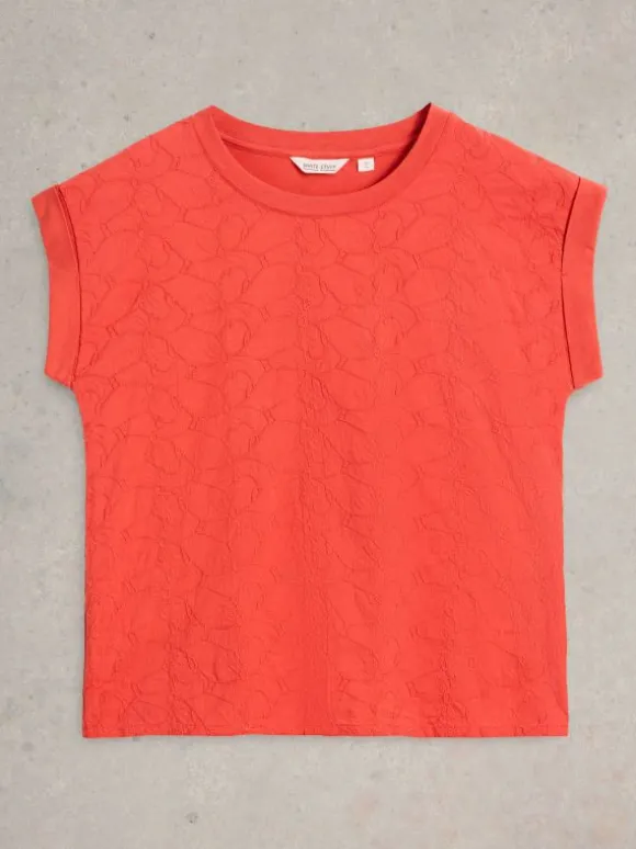 We like a tee with balance. That’s why this one has broderie on the front and a soft jersey fabric on the back. (It’s soft because it’s made from 100% organic cotton.)