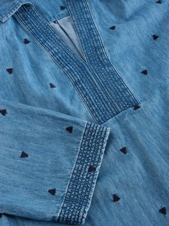 Be the first to review “Blaire Denim Embroidered Tunic in MID DENIM” Cancel reply