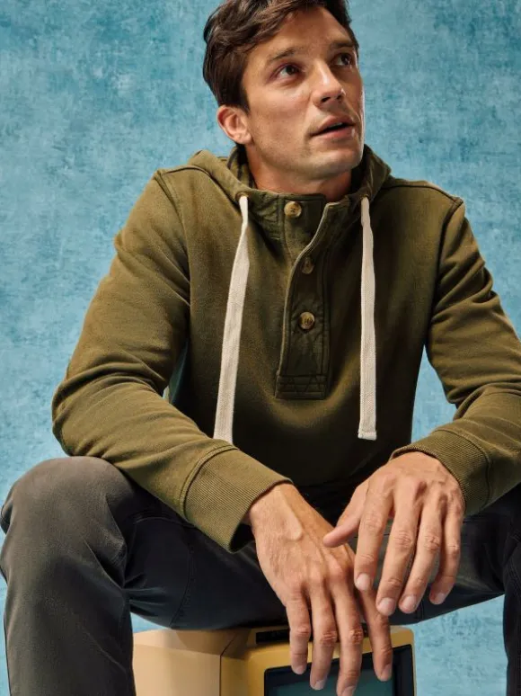 A comfy cotton hoodie with a little something extra. (Buttons and drawstrings to be precise.) Layer it over tees and under jackets.