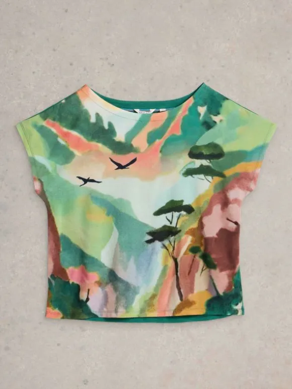Scenic in the front, simple in the back. This woven tee is made with LENZING™ ECOVERO™ viscose for a comfy feel.