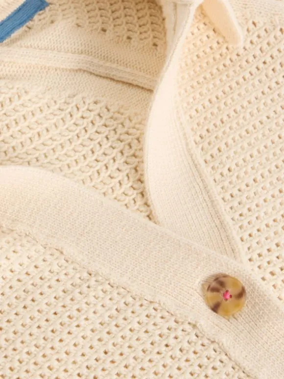 A chunky cotton cardigan with a collar. Now say it faster. (And spot the cute and colourful button threads.)