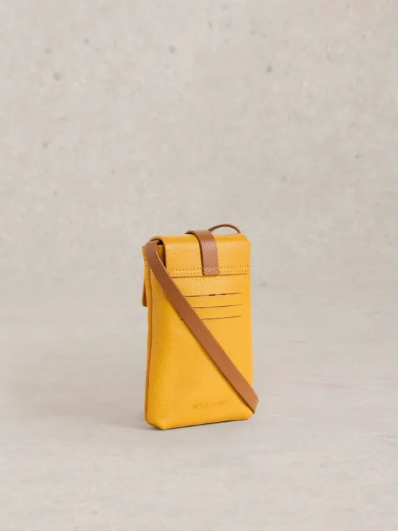Clara Buckle Leather Phone Bag in DEEP YELLOW