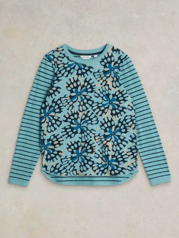 CLARA CREW NECK TEE in BLUE MULTI