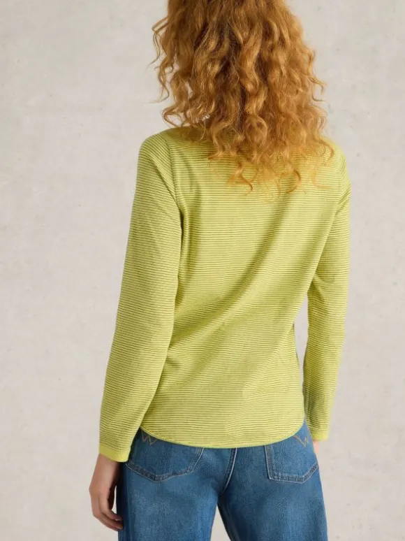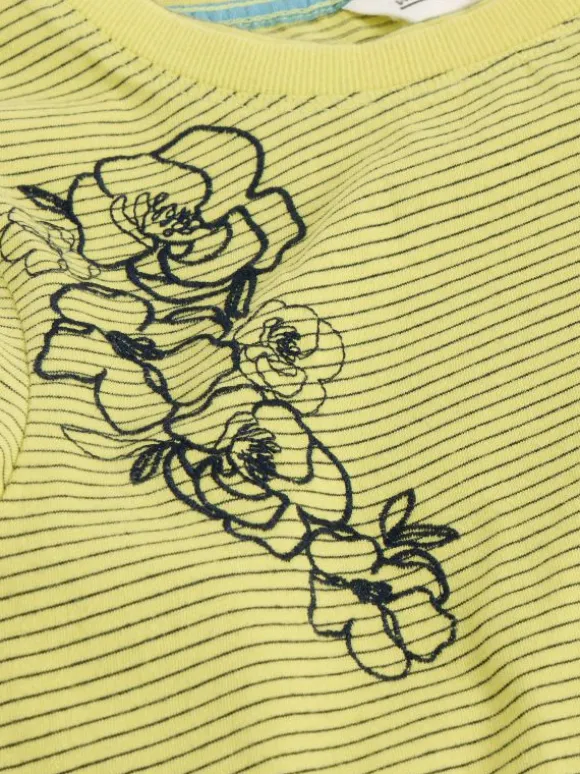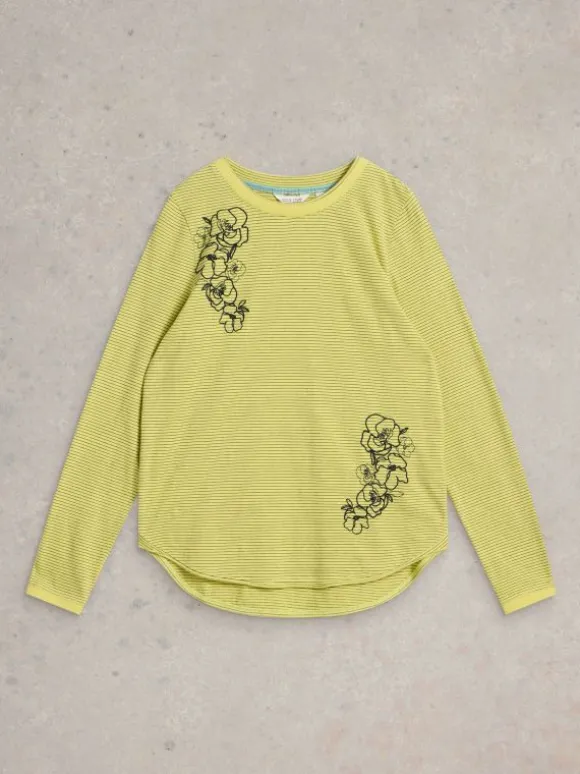 CLARA LONG SLEEVE EMBROIDERED TEE in YELLOW MULTI
