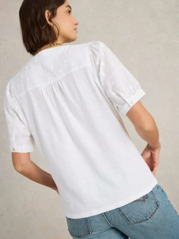 ELLIE BRODERIE TOP in BRILLIANT WHITE