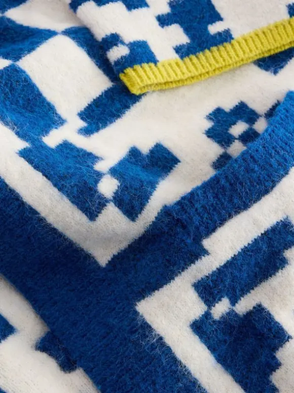 We’re shaking things up a bit with this one. Big geometric energy. Bold blue and white (with a zingy pop of yellow). This cardi is not here to blend it. Take it out for a spin and watch the heads turn.