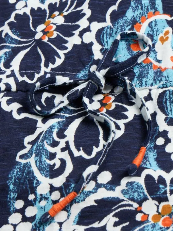 A midi dress with a drawstring waist to wear post-swim. Comes in a tropical print that reminds us of swimming pool tiles and sweet-smelling flowers.
