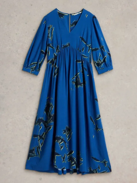 Lucy Midi Dress in BLUE PRINT
