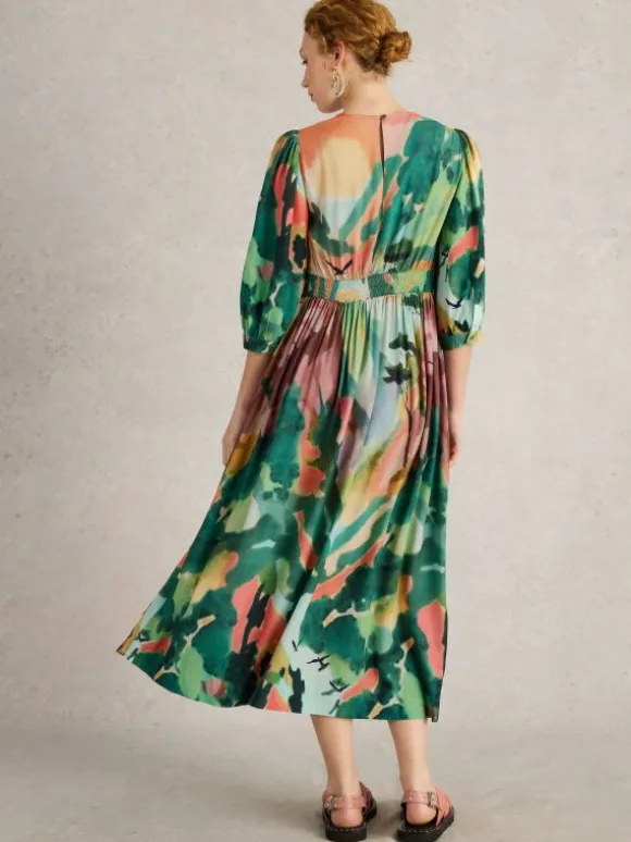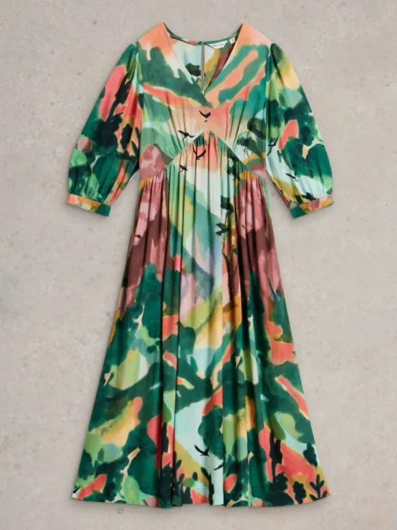 Lucy V Neck Midi Dress in GREEN MULTI