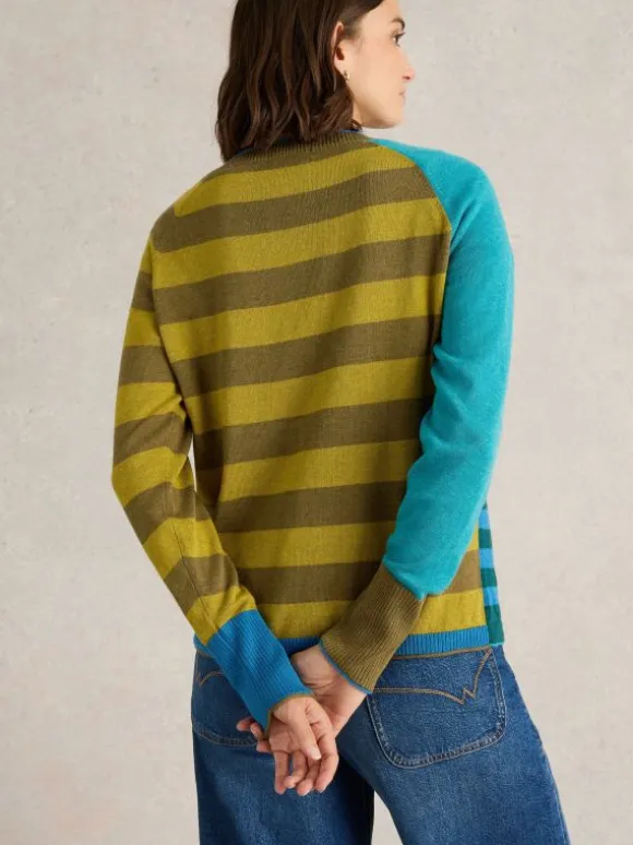 LULU STRIPED CREW NECK CARDI in BLUE MULTI