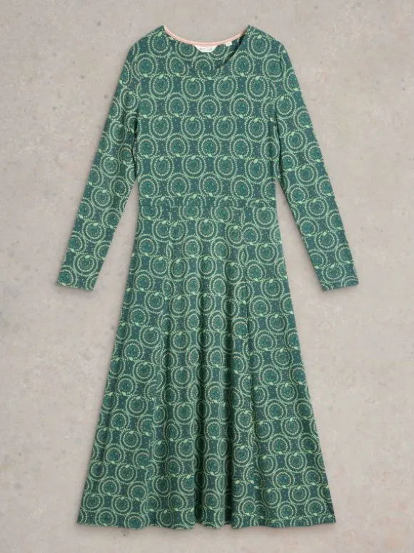 Madeline Jersey Midi Dress in TEAL PRINT
