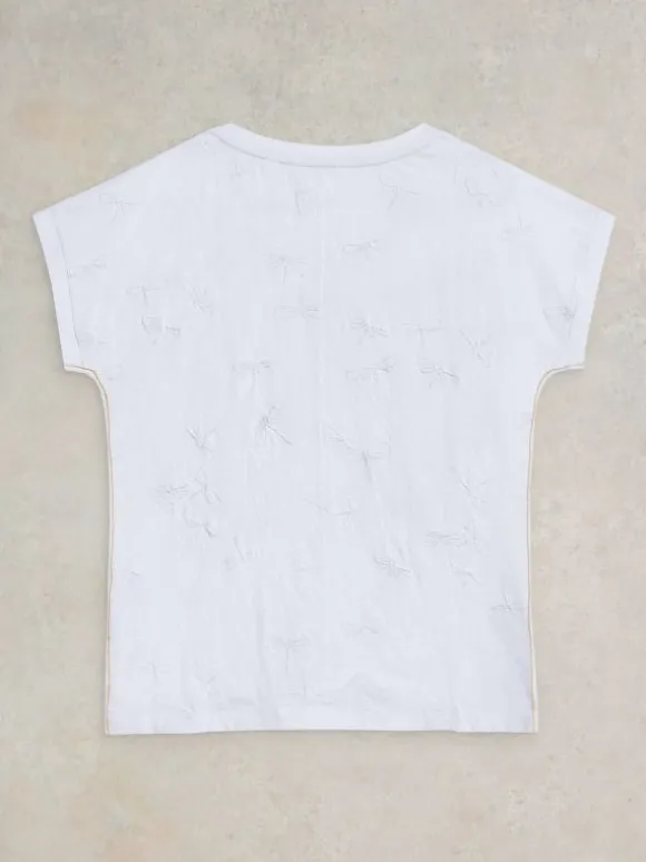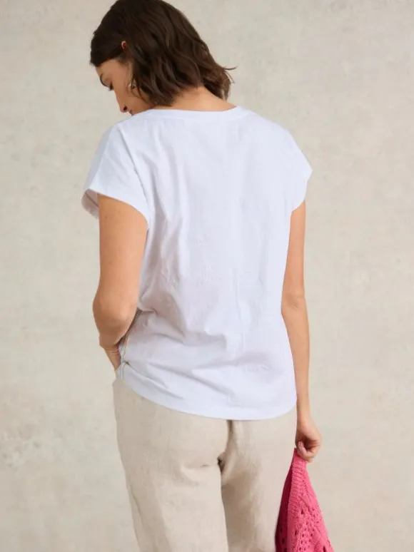 NELLY NOTCH NECK EMBROIDERED TEE in BRILLIANT WHITE