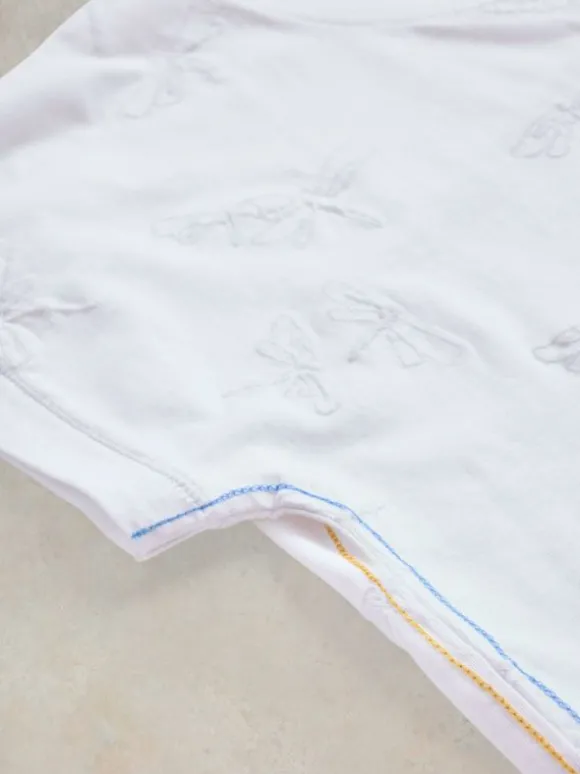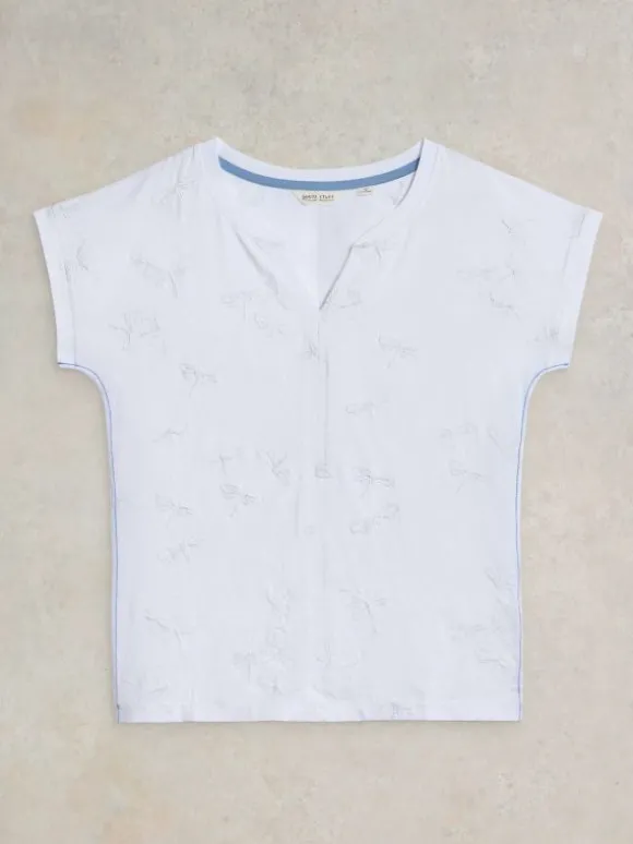 EA notch-neck top with an all-over dragonfly embroidered design. Pretty fly for a white tee.EShop all Nelly Tees