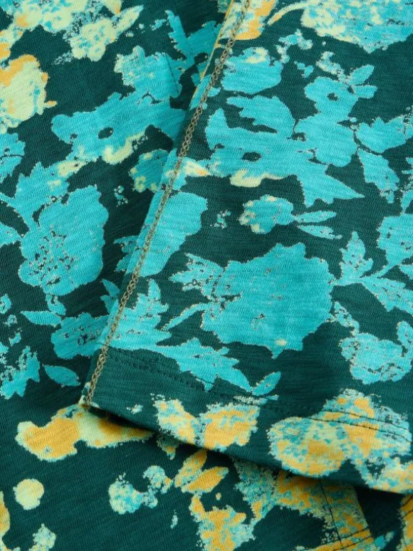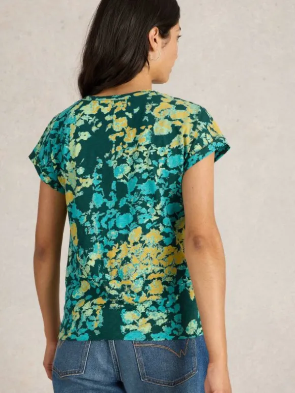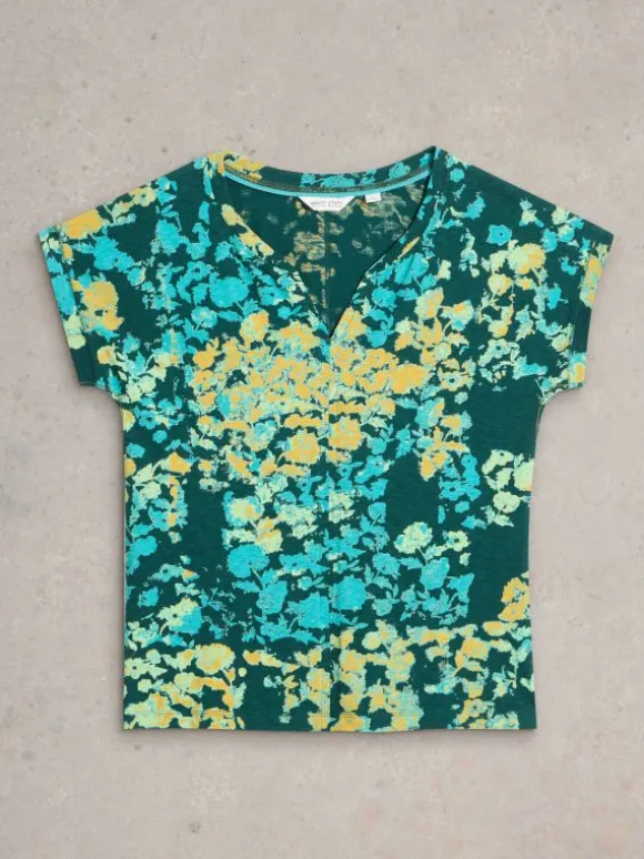 NELLY NOTCH NECK T-SHIRT in GREEN PRINT