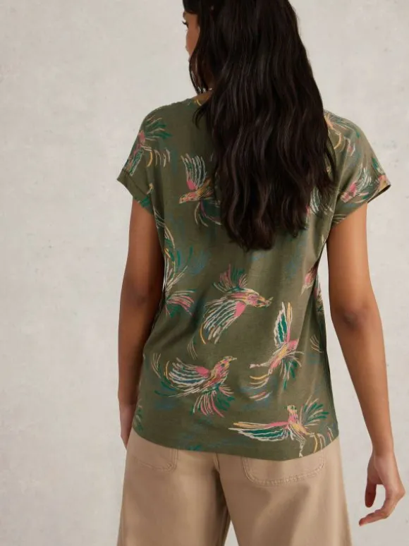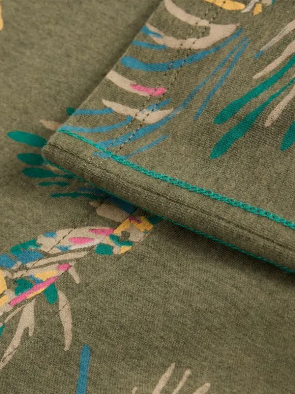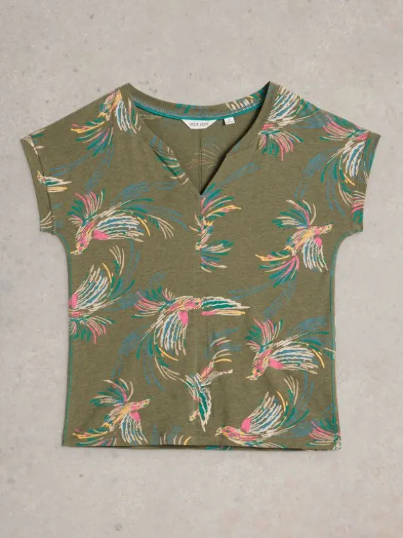 NELLY SHORT SLEEVE NOTCH NECK TEE in GREEN PRINT