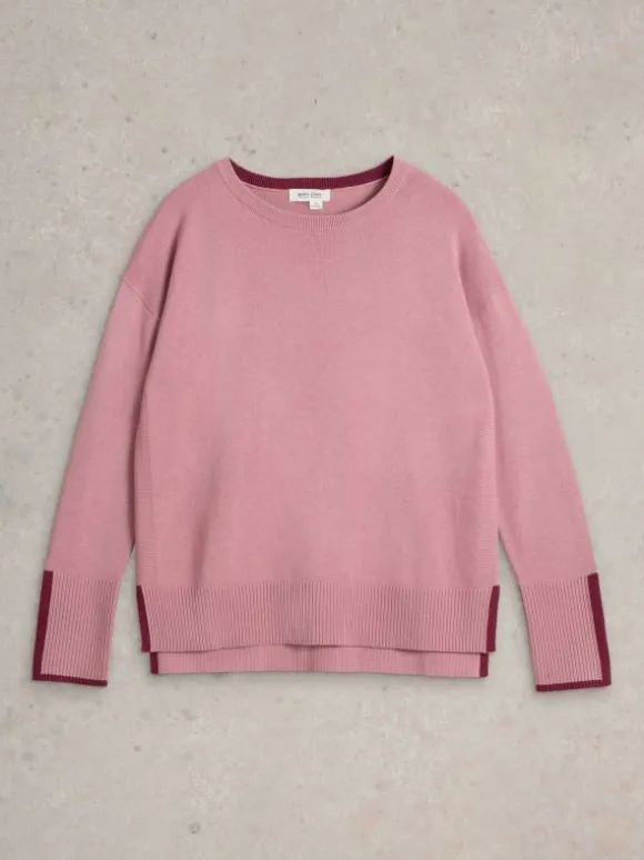 OLIVE CREW NECK COTTON JUMPER in DUSTY PINK